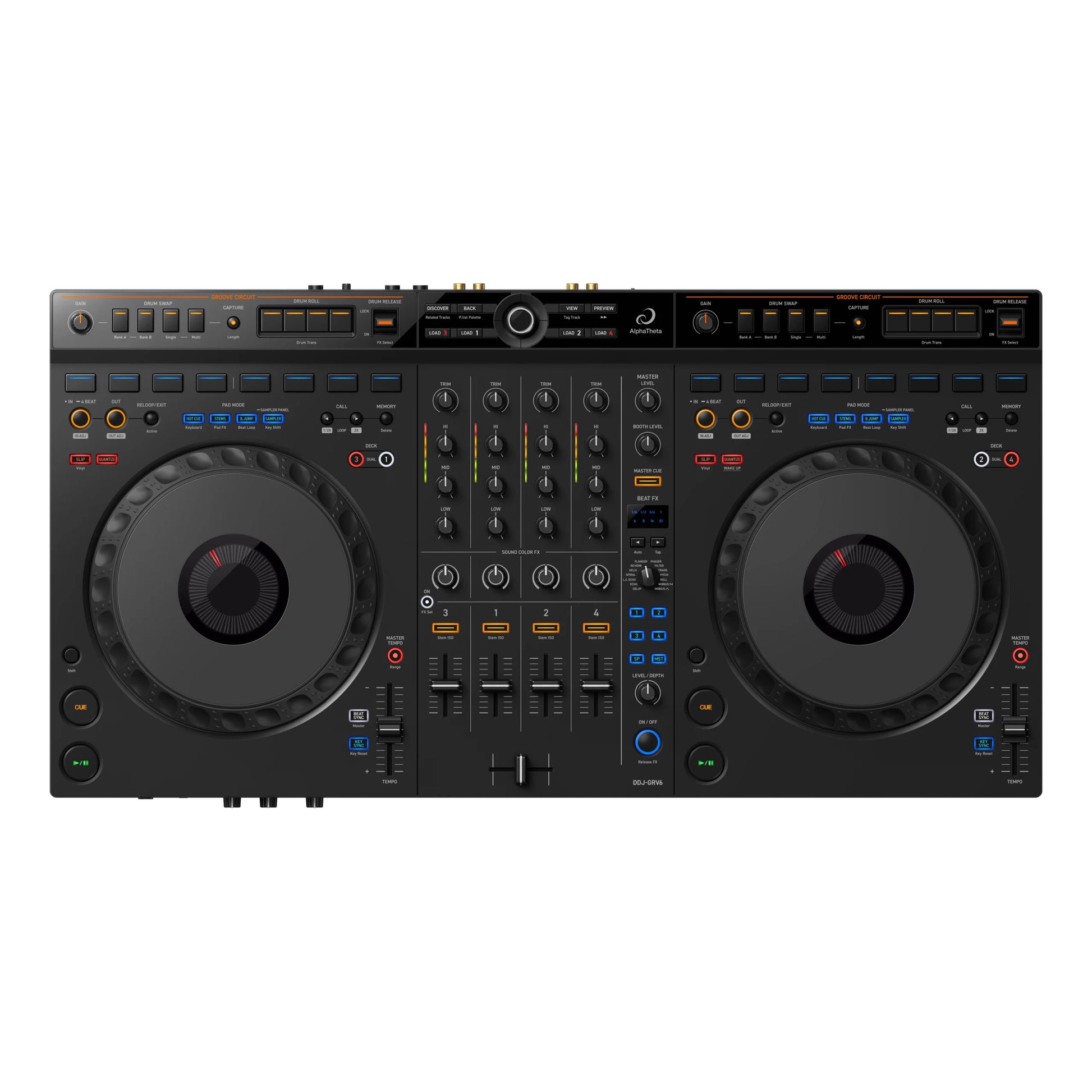 The DDJ-GRV6 is a versatile 4-channel DJ controller built for DJs seeking a balance of professional features and creative options. With the innovative Groove Circuit, it allows users to manipulate drum parts, add effects, and create remixes with ease. The CDJ + DJM-style layout includes large jog wheels and Beat FX from the flagship DJM-A9 mixer, offering a familiar experience for club-level performances.