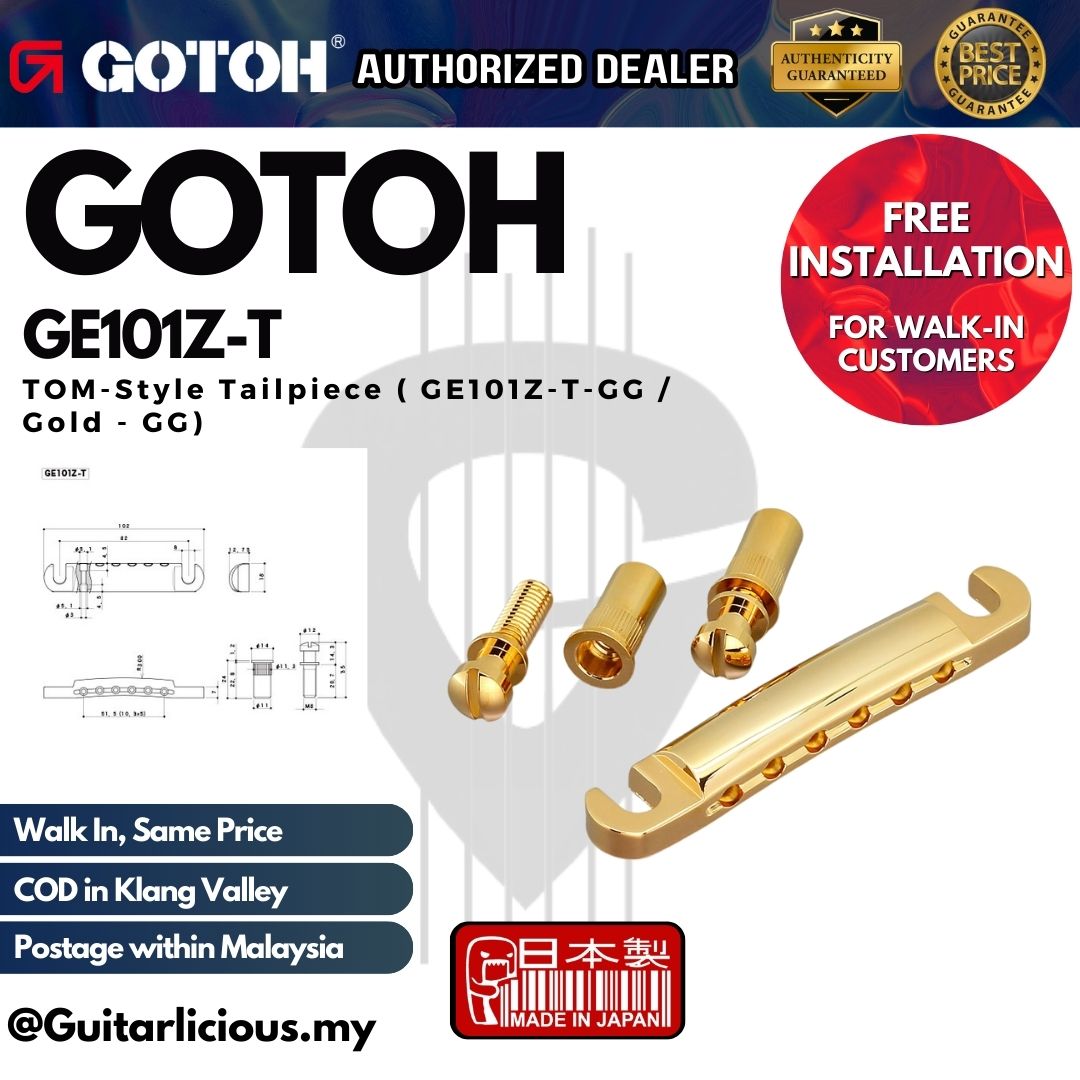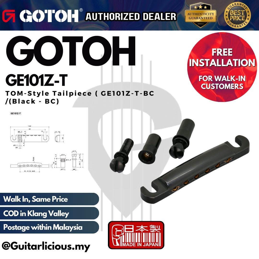 The GOTOH GE101Z-T TOM-Style Tailpiece is a high-quality, durable stop tailpiece made of die-cast zinc, designed for guitars with Tune-o-Matic bridges and metric spacing.