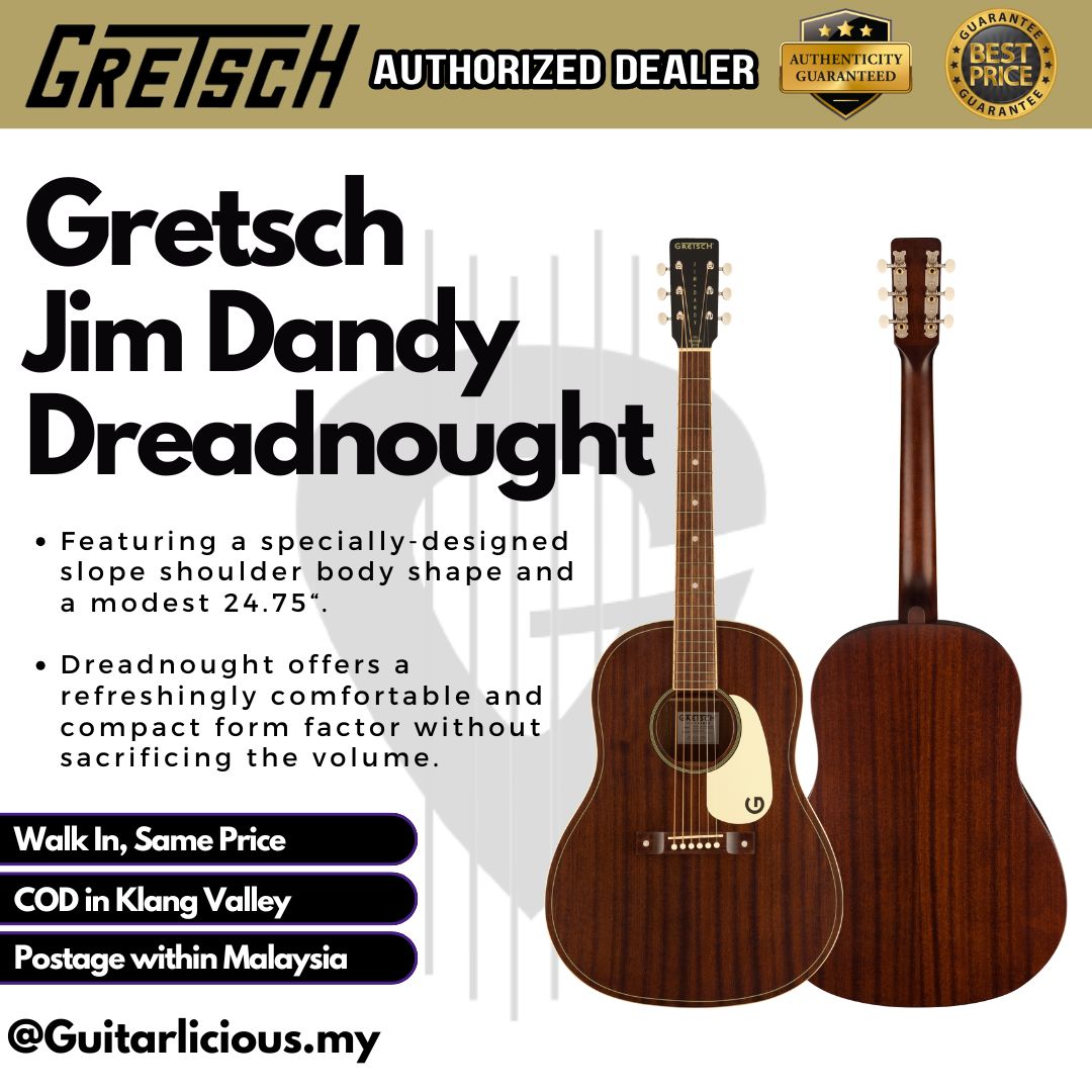 Well suited for everything from bluesy porch pickin’ to speakeasy swingin’, the Gretsch Jim Dandy Dreadnought is a ramblin’ companion for newbies and old-timers alike