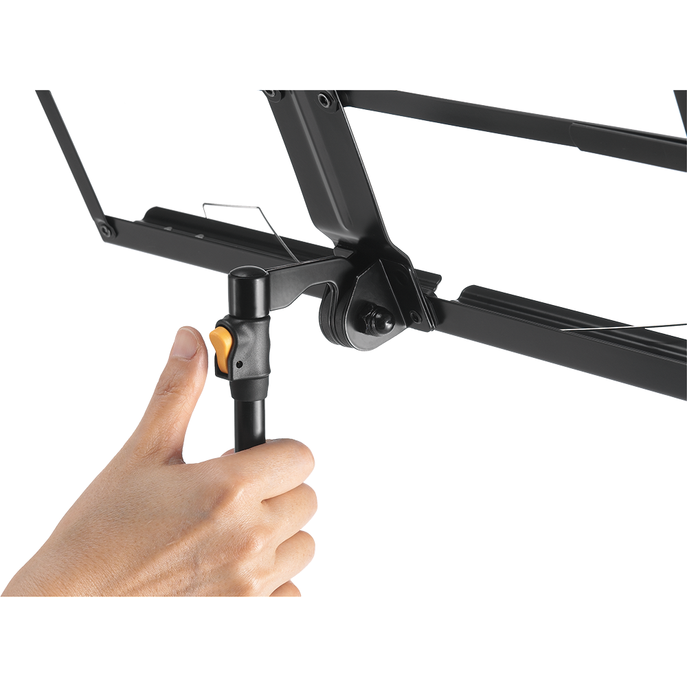 The HERCULES Music Stand BS118BB features the EZ Grip one-handed height adjustment. This three-section stand is ideal for musicians whether they prefer sitting or standing while they play. Includes a handy carry bag.