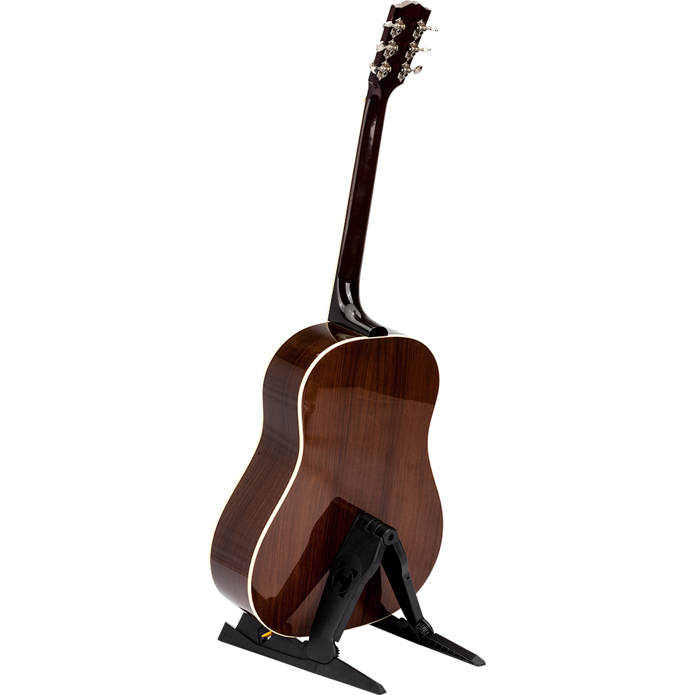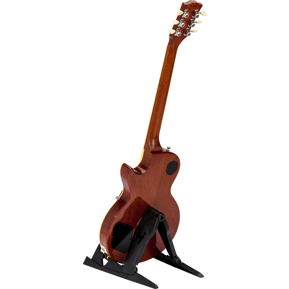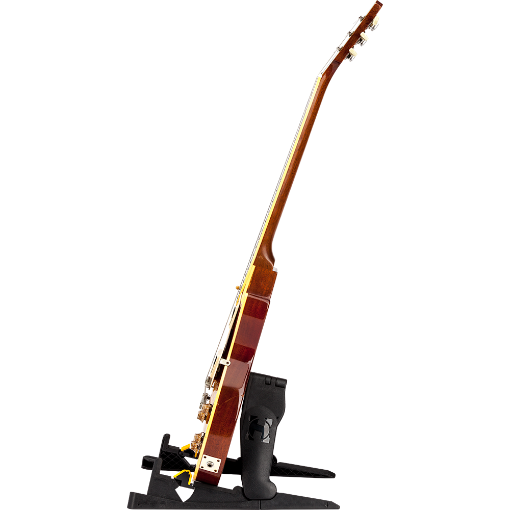 The HERCULES EZPack Guitar Stand GS200B features a patented design that fits both acoustic and electric instruments, hard rubber contacts that protect your instrument, and GS200B folds compact enough to fit in backpacks, instrument cases or gig bags.