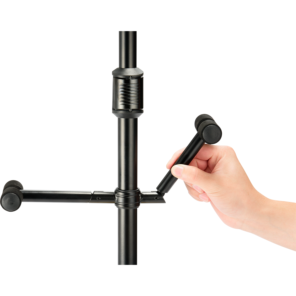 Two folding built-in Auto Grip Systems safely lock the instrument(s) in place. The AGS yoke is designed to accommodate more guitar neck sizes from 40 mm – 52 mm (1.57” - 2.05”) including classic, acoustic, electric and bass guitars.