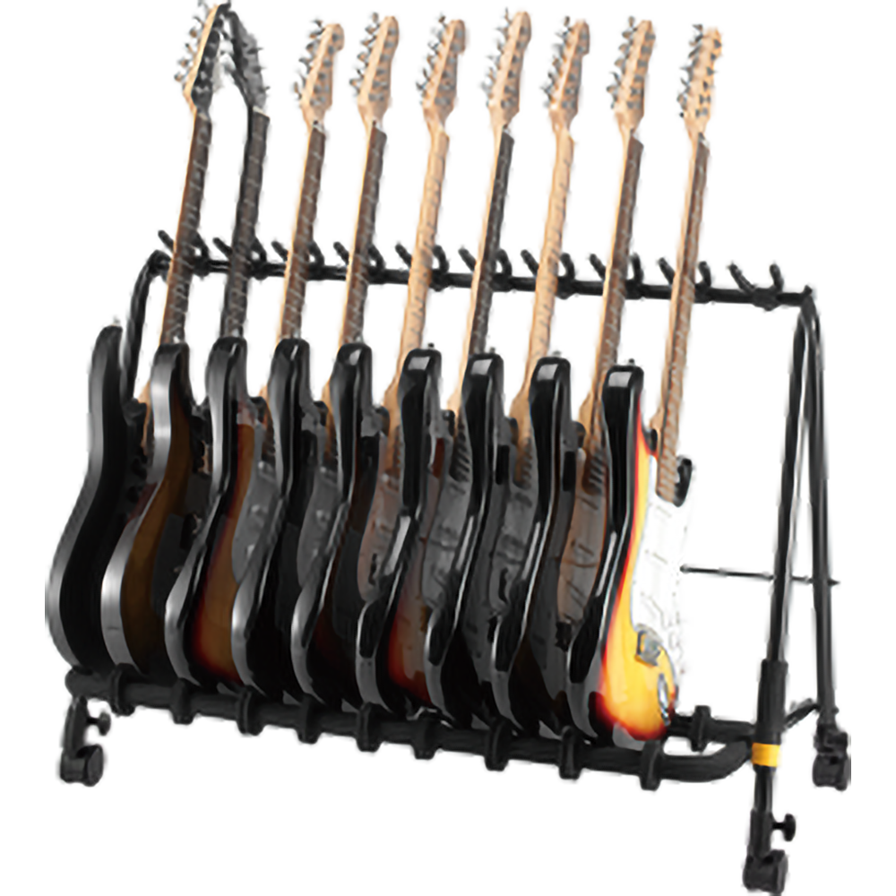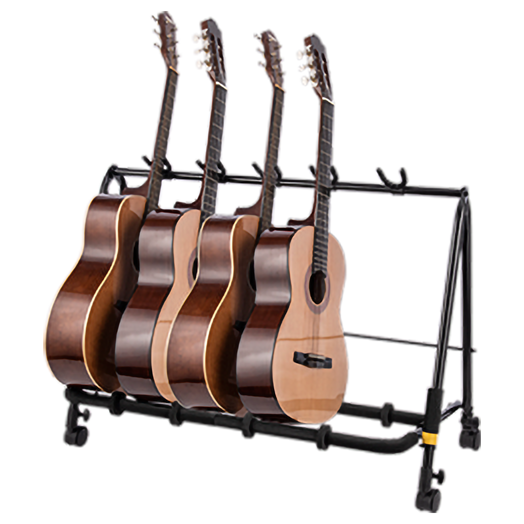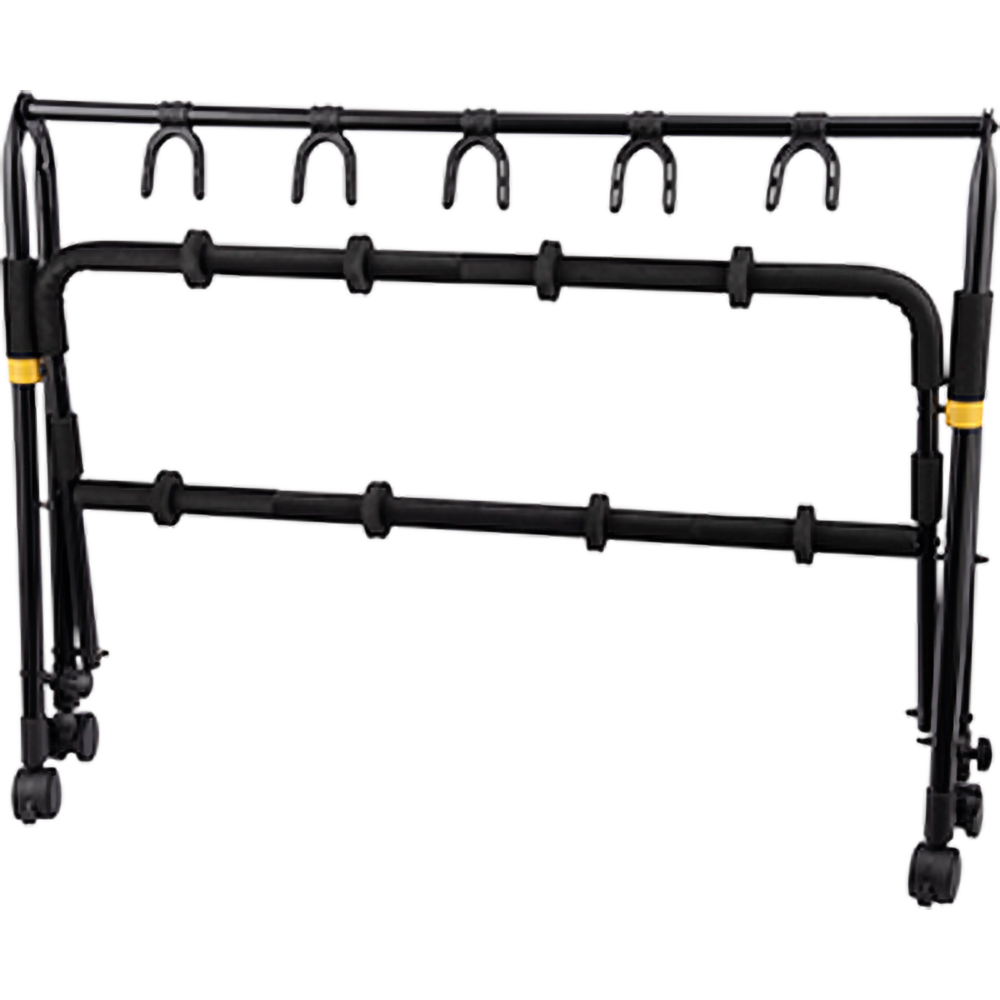 The GS525B PLUS HERCULES Multi-Guitar Rack with add-on casters accommodates five guitars and utilizes Specially Formulated Foam (SFF) padding to cover all contact points. HA205 allows expansion to accommodate up to 10 guitars.