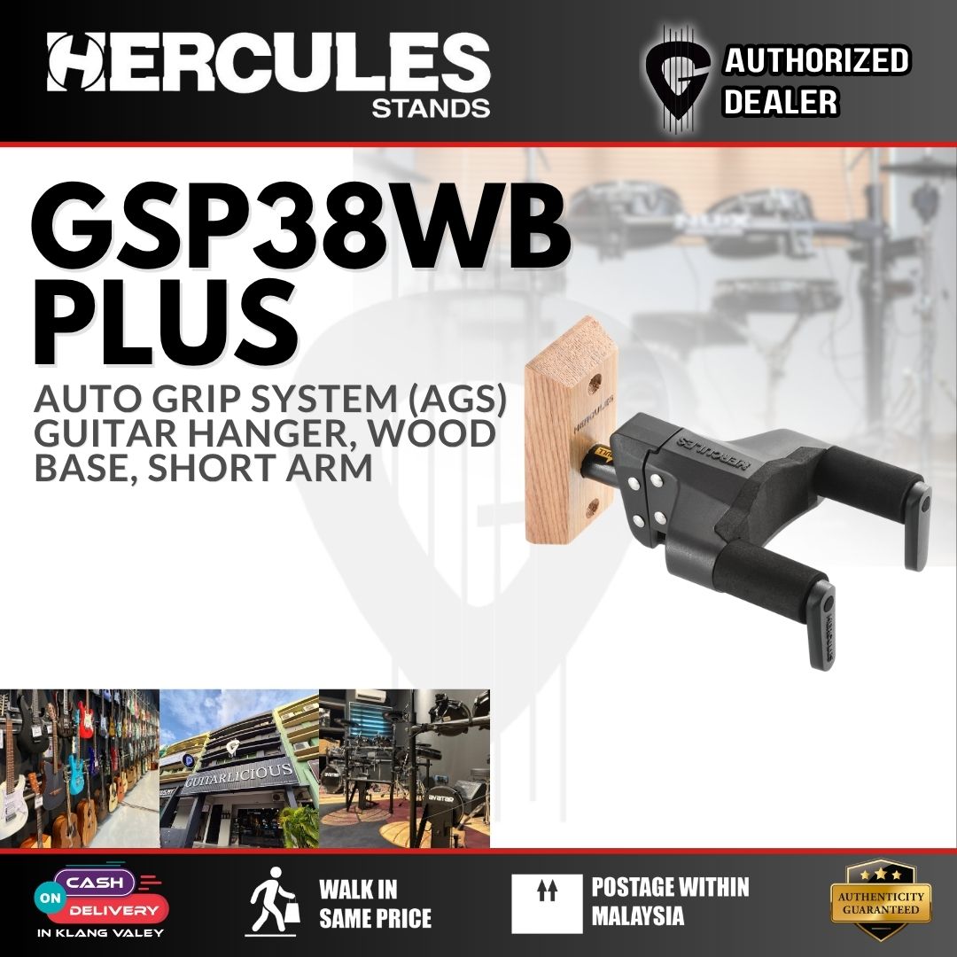 The Hercules GSP38WB Plus is a convenient way to mount guitars and other stringed instruments in your studio, office, or home. Its AGS (Auto Grip System) yoke safely grips instruments as they are loaded in, supporting neck widths up to 2.01". The attractive wood mounting base complements fine wood instruments. Included with the GSP38WB Plus is the N.I.N.A. (Narrow Instrument Neck Adjustment) accessory, which accommodates ukulele, banjo, mandolin, and violin necks as narrow as 1.1". For looks, security, and ease of use, this wall hanger provides reliable support for your instruments.