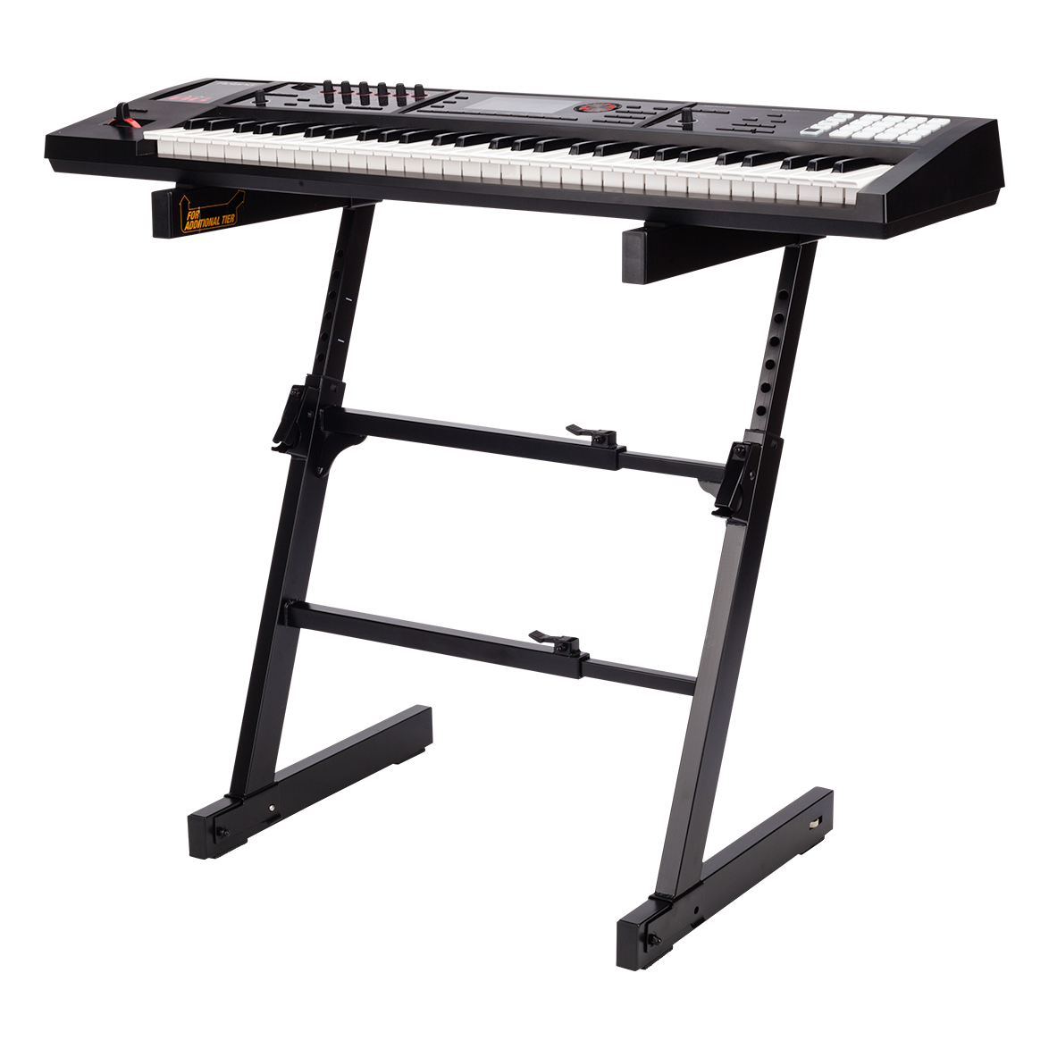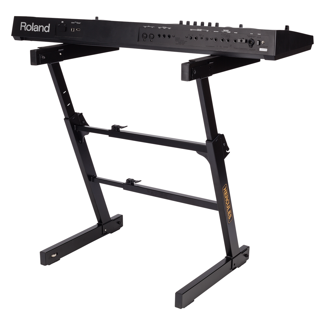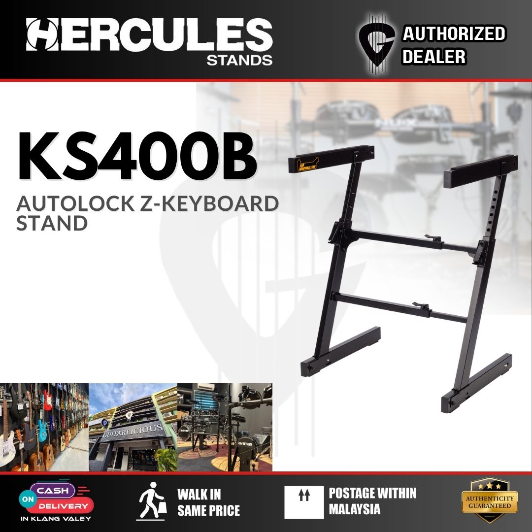 The HERCULES Z-Style Keyboard Stand KS400B has a built-in AutoLock system for easy height adjustment and has a one-piece compact folding design.