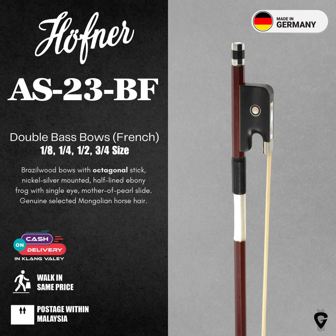 The Höfner AS-23BF 1/8 Brazilwood Double Bass Bow (French Model) is a well-crafted bow designed for young bassists and beginners. Made from durable Brazilwood, it offers an excellent balance of stability and flexibility, making it ideal for developing proper technique. Its French-style grip supports traditional playing posture and comfort, especially for those just starting out