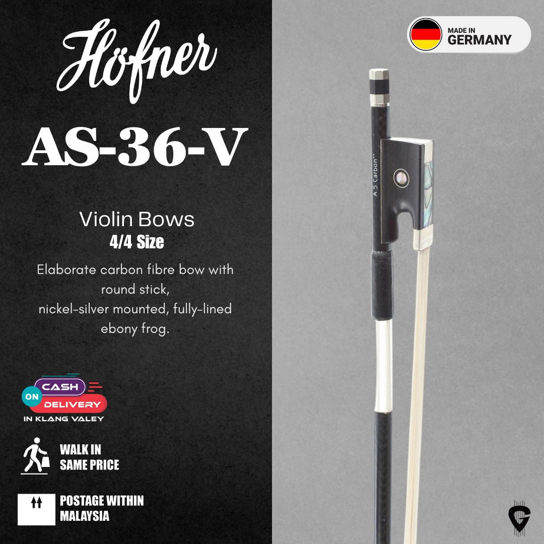 The Höfner AS-36 4/4 Carbon Professional Violin Bow is a meticulously crafted bow designed for advancing students and intermediate players seeking a blend of durability, responsiveness, and aesthetic appeal.Constructed from high-quality carbon fiber meshwork, it offers enhanced stability and resilience compared to traditional wooden bows.The round stick ensures smooth handling, while the fully-lined ebony frog with nickel-silver mountings adds both elegance and functionality.This bow is ideal for players seeking a reliable and well-balanced tool to support their musical development.