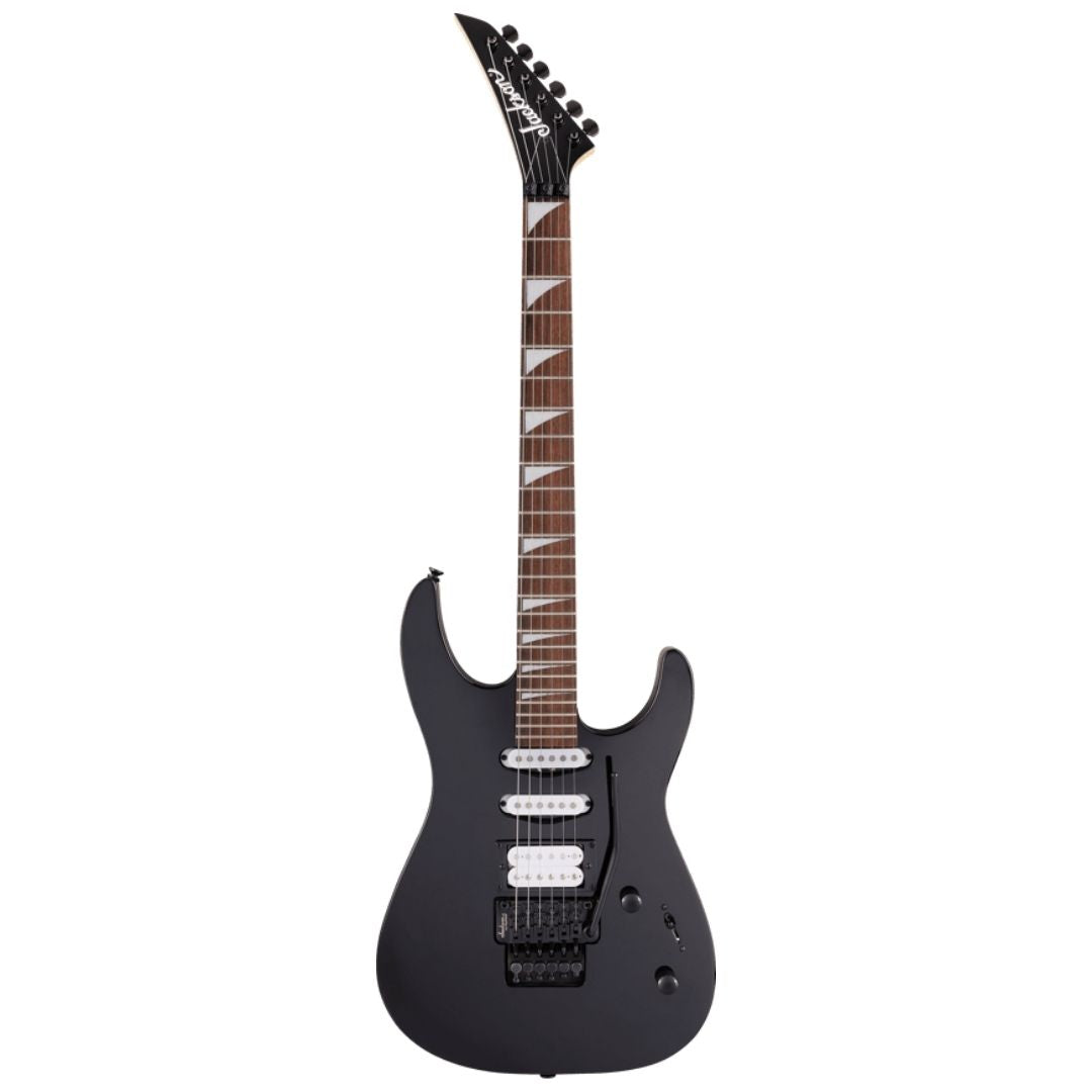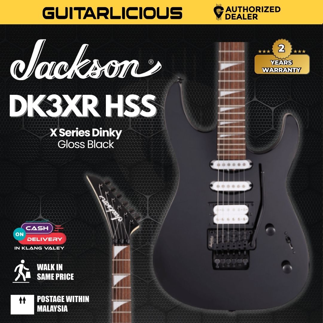 Captivating in both sound and style, the X Series Dinky DK3XR HSS is dressed in Gloss Black with a color matched reverse Jackson pointed 6-in-line headstock and black hardware. The Gloss Black model also features white pickup bobbins and white Jackson headstock logo.
