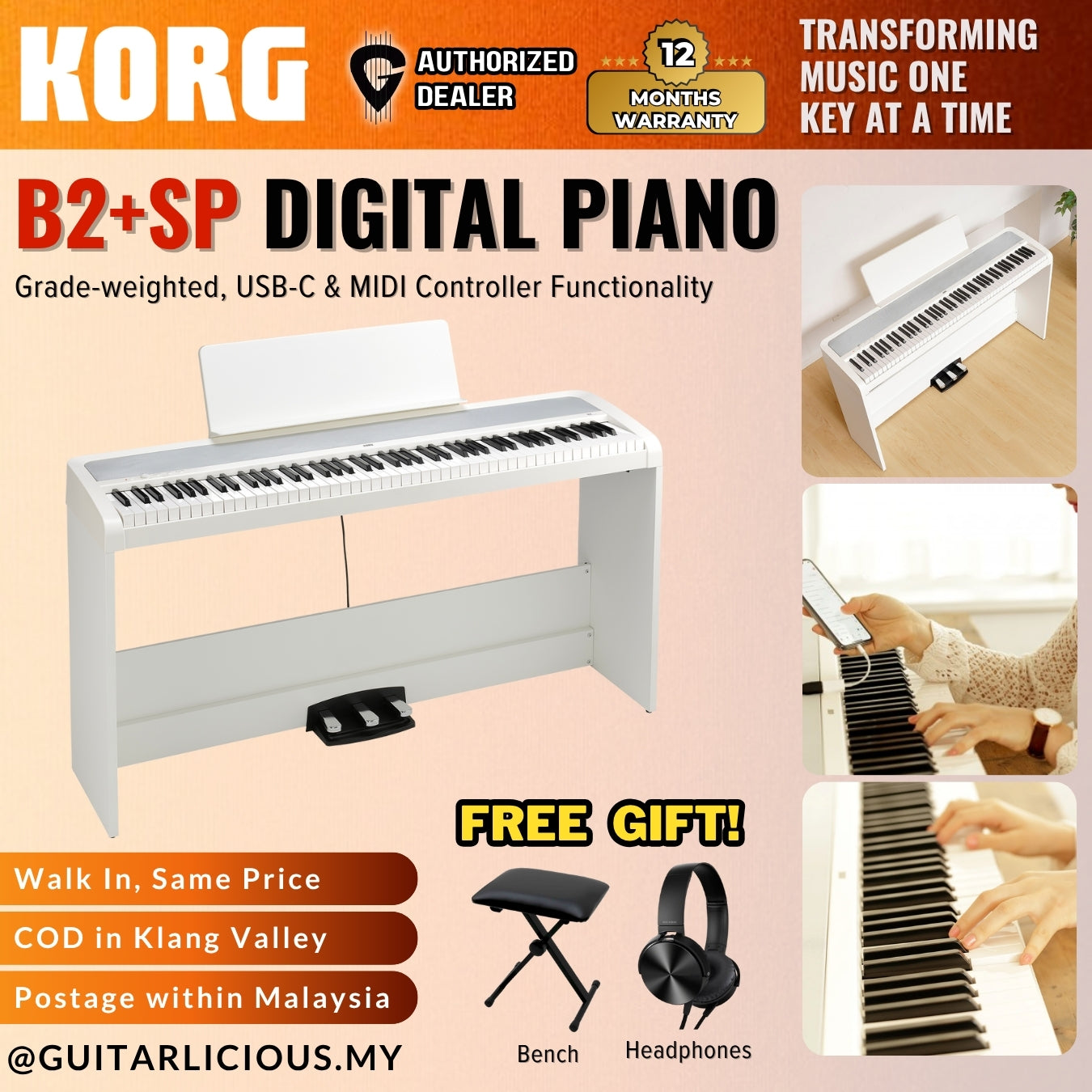 Korg B2+SP 88-Key Digital Piano With Bench, Note Stand & Adapter - White