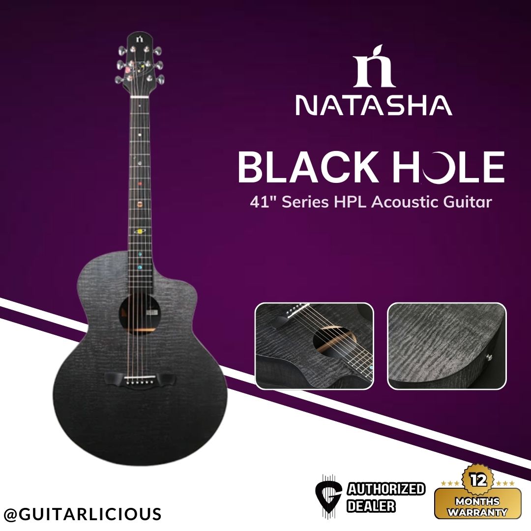 Natasha Guitar 41" Black Hole Series HPL Acoustic Guitar - Black