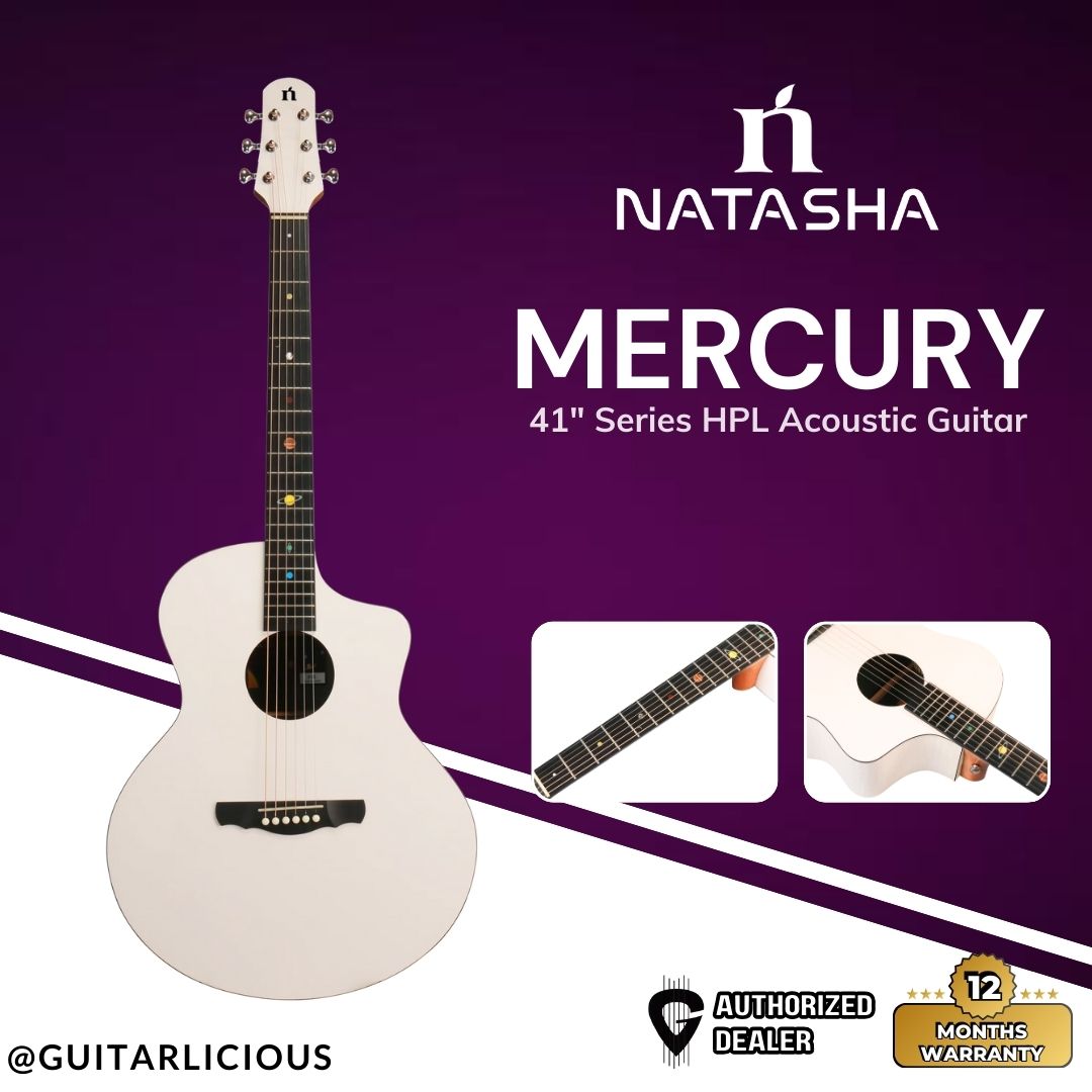 Natasha Guitar 41" Mercury Series HPL Acoustic Guitar - White