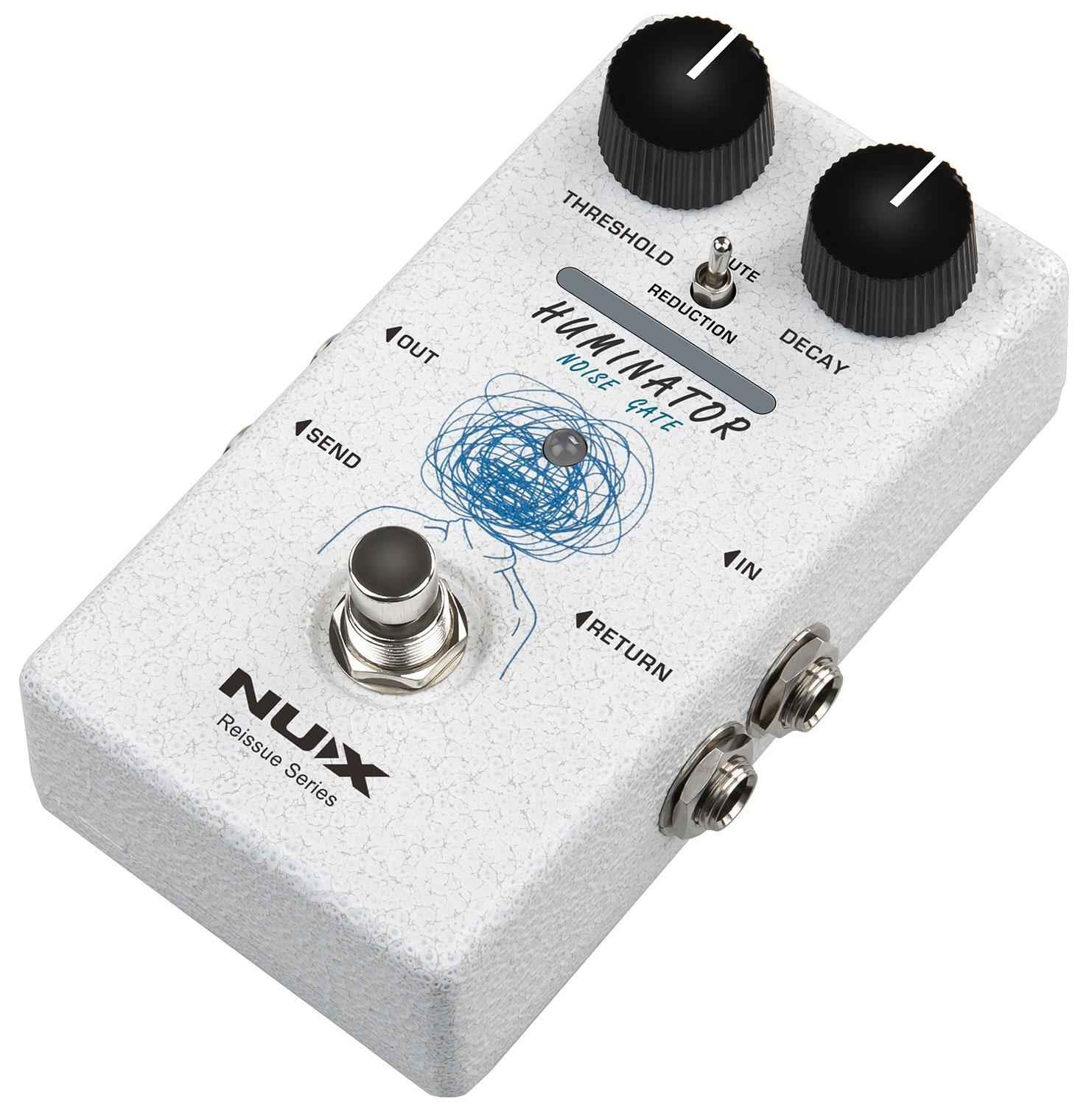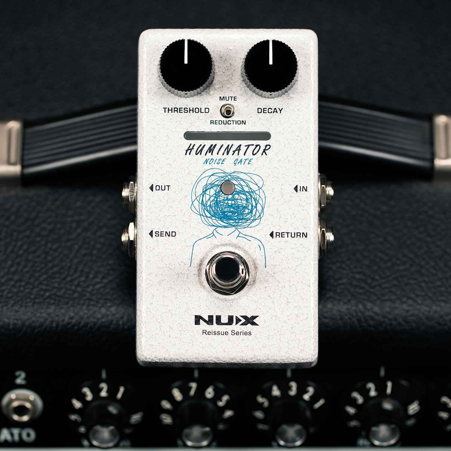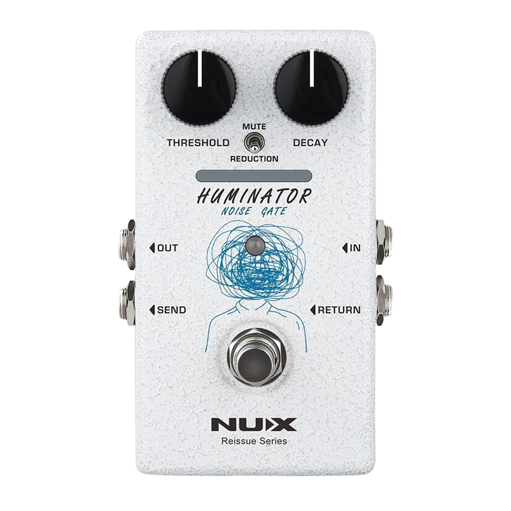 Huminator is a high quality noise gate pedal for guitar or bass. All analog circuitry guarantees pure signal integrity with Threshold and Decay controls to adjust the gating level and release curve of the gate. Effects that produce the most noise in a chain can be isolated through the send/return loop so that only they are subjected to the noise gate process, leaving other pedals in the chain without any unwanted effect from the gate. A Reduction and Mute switch can be set to completely mute the signal when the pedal is deactivated to prevent unwanted noise from the instrument when it is not being played. Huminator is a professional noise reduction tool that can make all the difference to a multi-pedal setup.
