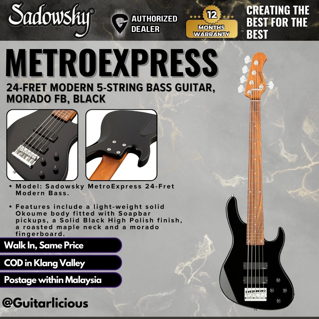 Sadowsky MetroExpress 24-Fret Modern 5-String Bass Guitar, Morado FB, Black