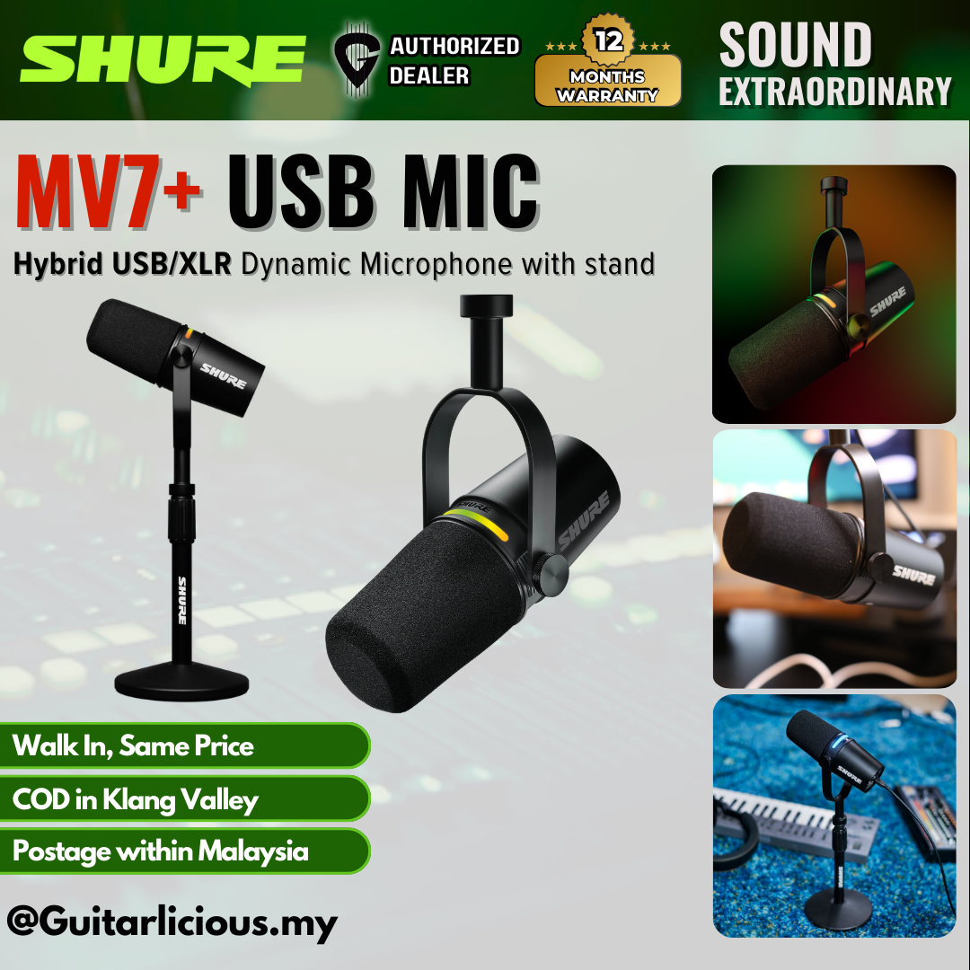 Shure MV7+ USB Podcast Microphone and Stand - Black ( MV-7+ / MV 7+ )