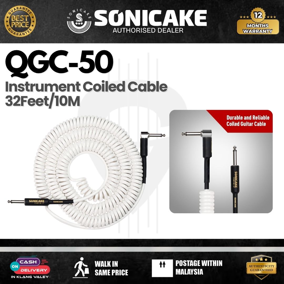 SONICAKE QGC-50 Instrument Coiled Cable 32Feet/10M (1/4 Right Angle to Straight) - White (QGC-50)