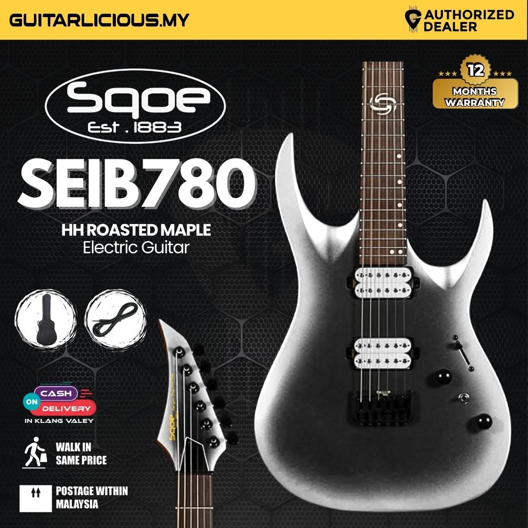 The SQOE SEIB 780 HH Electric Guitar with Roasted Maple Neck is a dual-humbucker guitar featuring a poplar body, a roasted maple neck and fingerboard, and a synchronized tremolo bridge system. It is known for offering quality craftsmanship and versatile tone at a competitive price point, particularly for beginners and intermediate players.