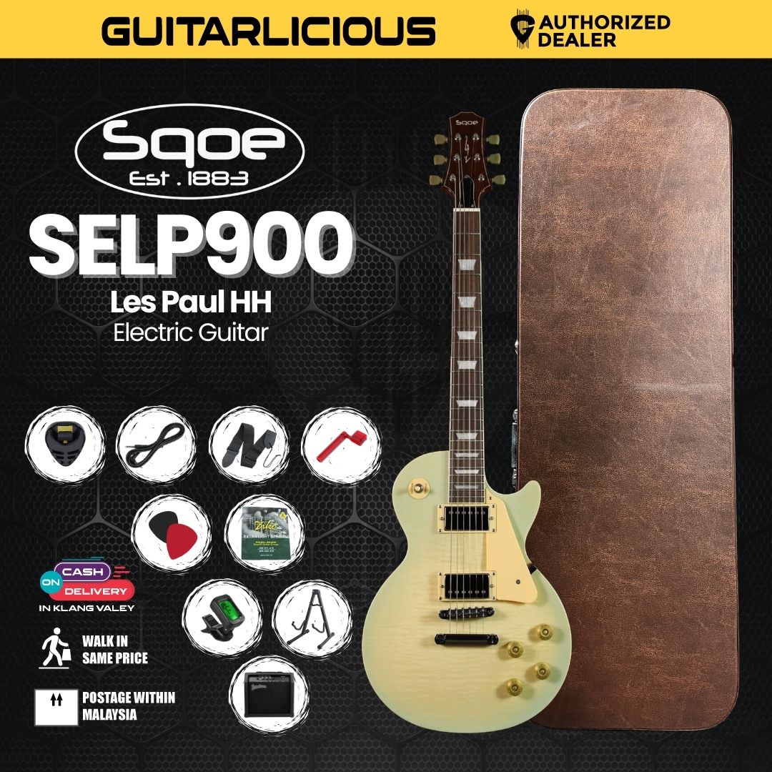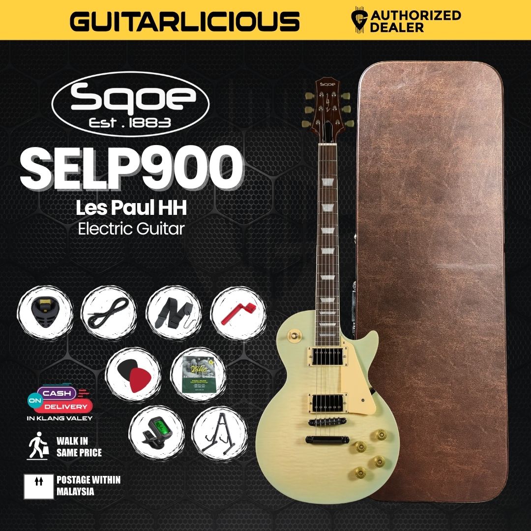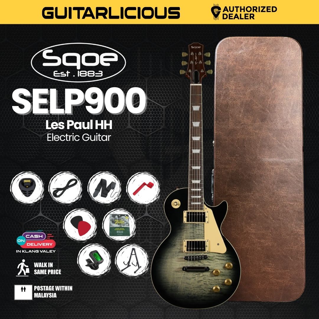 This 6-string electric guitar is designed with classic single-cut aesthetics.It features a Mahogany body with a Flame Maple top, providing a rich, resonant tone with striking visual appeal. The neck is also Mahogany, paired with a Rosewood fretboard (22 frets) and inlaid white shells. It’s equipped with Alnico H-H (Humbucker-Humbucker) pickups, offering powerful and versatile rock tones. With Vintage LP-style tuners and a 3-way switch, the SELP900-BLS delivers a blend of classic looks and modern playability.